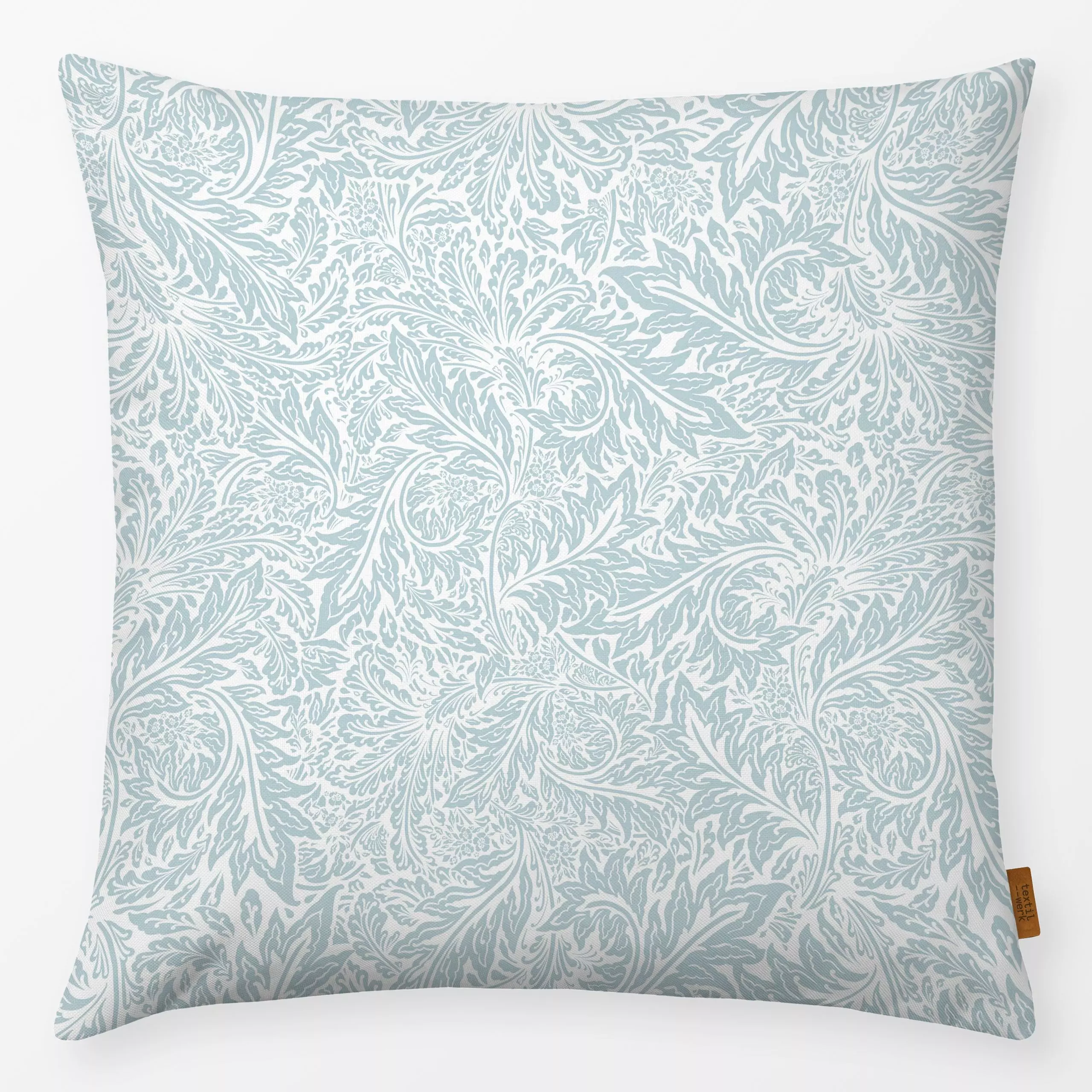 Kissen Morris blue leaves - Blumen & Florales, Pflanzen & Botanik, Retro & Vintage - von „Bloomery Decor"; Blätter, Sommer, ...