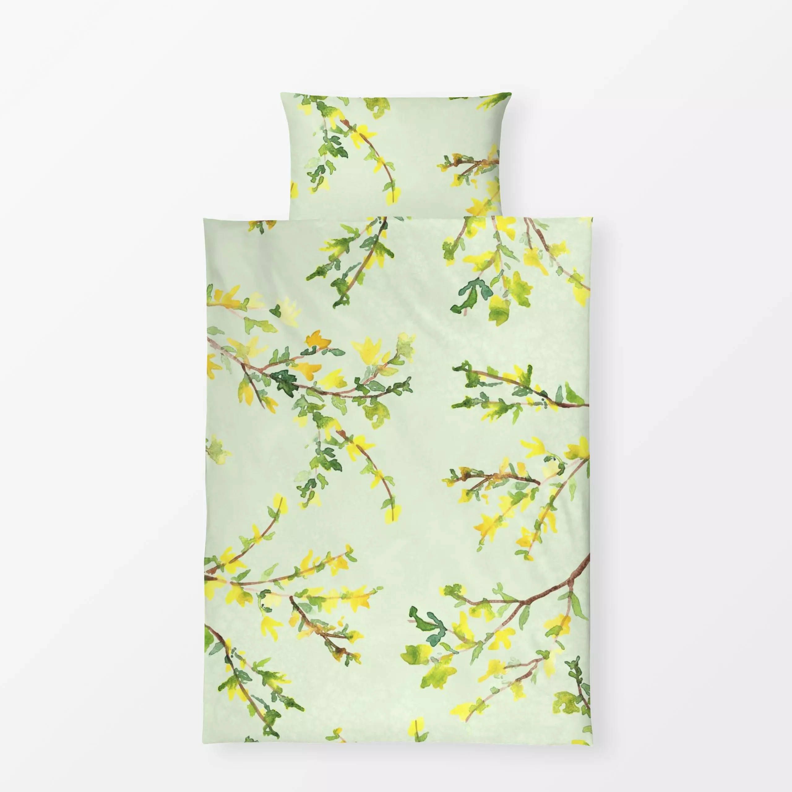 Bettwäsche Forsythie Aquarell Gelb Grün - Blumen & Florales, Frühling, Pflanzen & Botanik, Ostern - von „Mareen Heinz"; Wass...