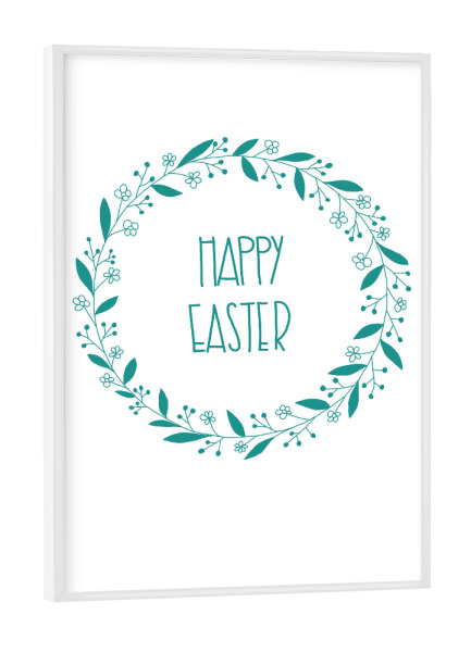 Poster mit weißem Rahmen "Happy easter grün" artboxONE - Typografie - Ostern,Frohe ostern,Ostern geschenk,Floral,Pflanzen,Blumenkranz,Blumen,Happy