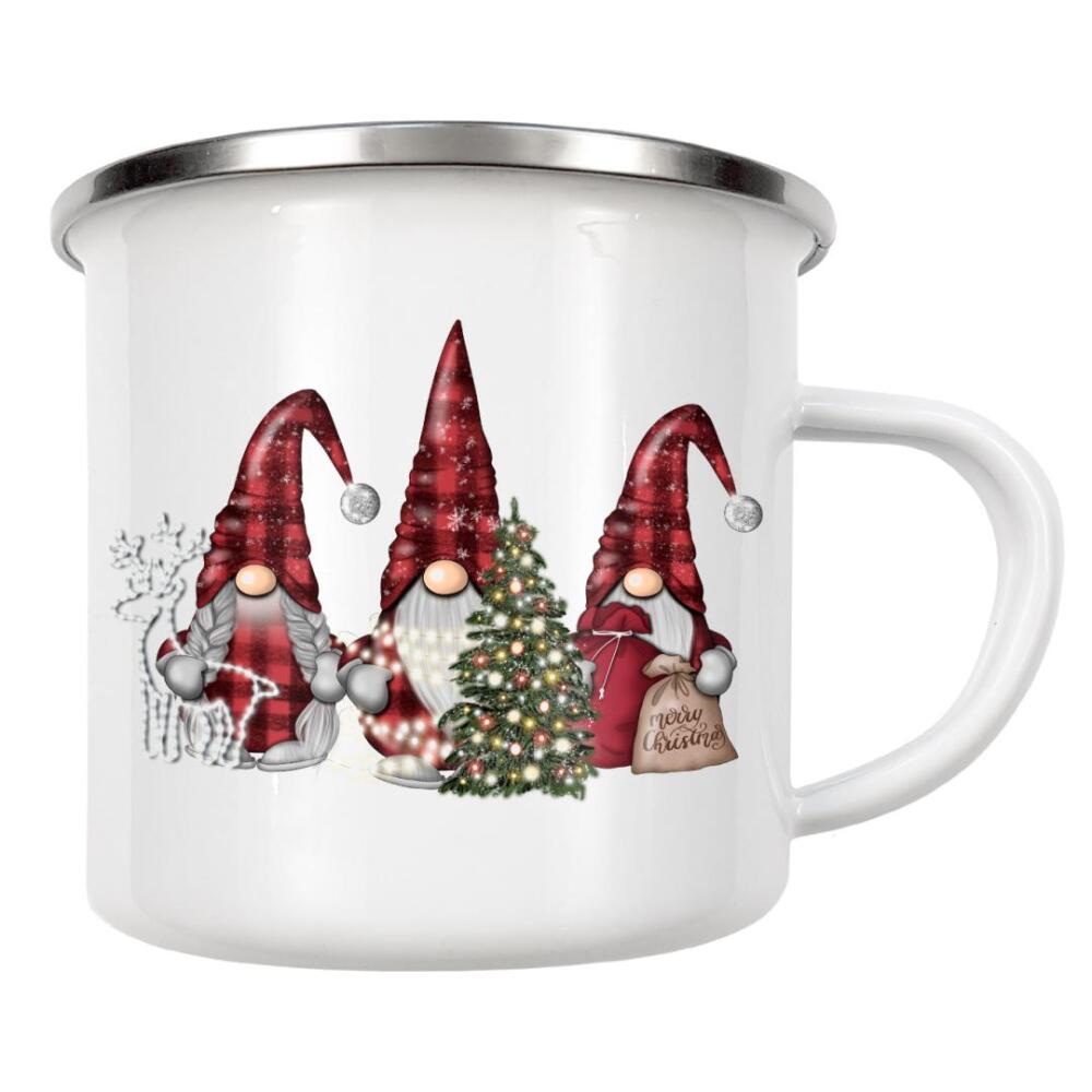 Emaille Tasse "Buffalo Plaid Gnomes" artboxONE - Für Kinder,Weihnachten,Für Mama,Festivals,Lustig