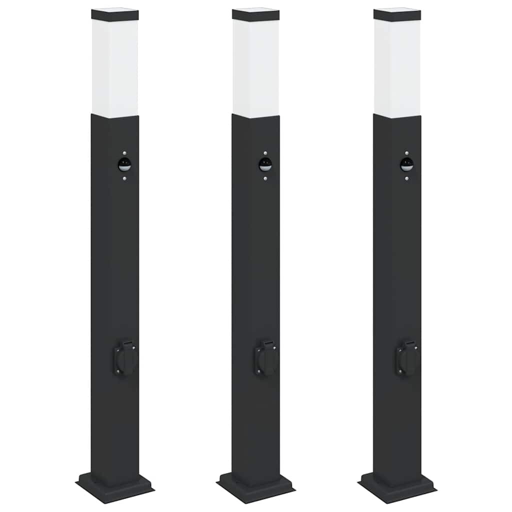 Pollerleuchten mit Sensor und Steckdose 3 Stk. 120 cm Schwarz IP44