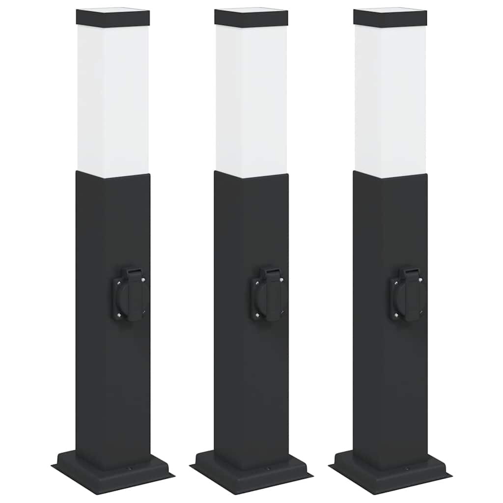 Pollerleuchten mit Steckdose 3 Stk. 80 cm Schwarz IP44