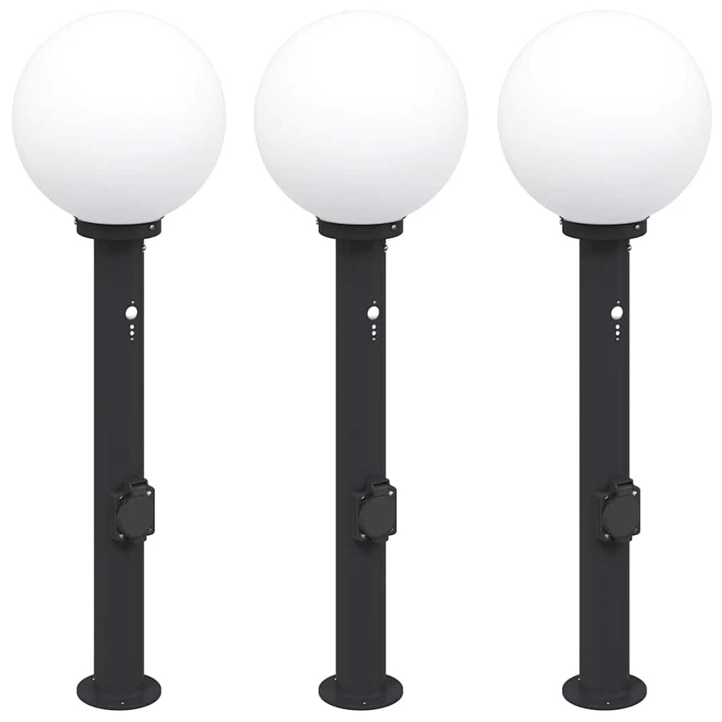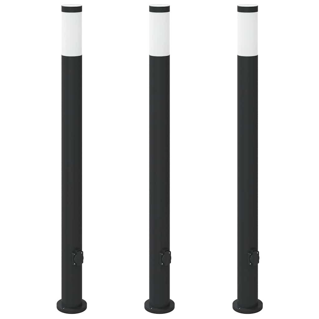 vidaXL Pollerleuchten mit Steckdose 3 Stk. 80 cm Schwarz IP44