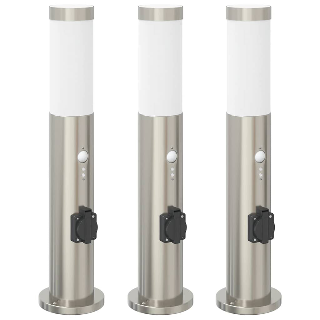 vidaXL Pollerleuchten mit Sensor&Steckdose 3 Stk. 50 cm Edelstahl IP44