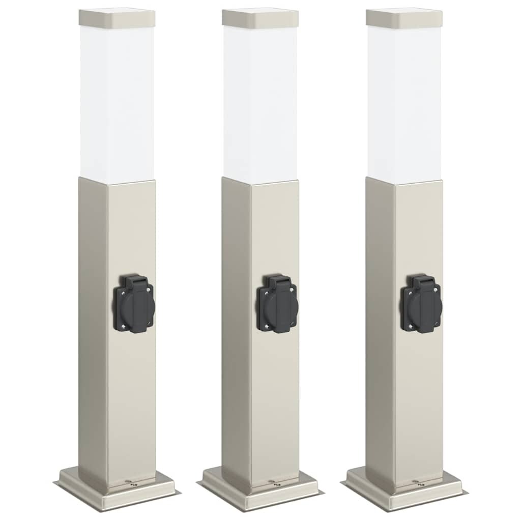 vidaXL Pollerleuchten mit Sensor&Steckdose 3 Stk. 80 cm Edelstahl IP44