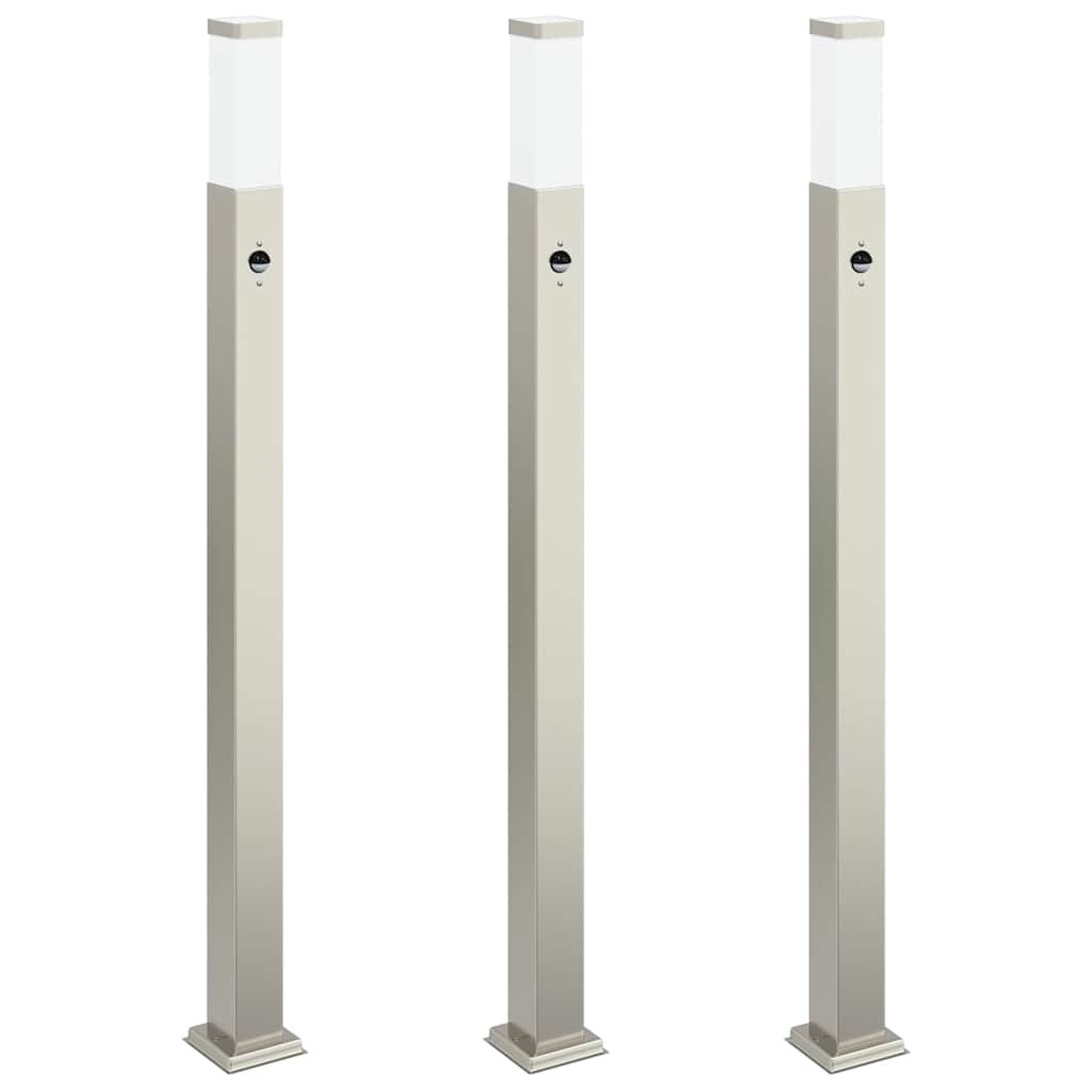 Pollerleuchten mit Sensor 3 Stk. 120 cm Edelstahl IP44