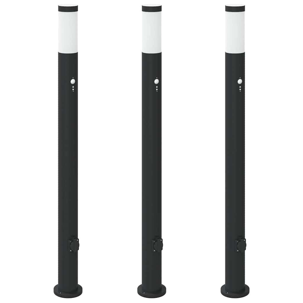 vidaXL Pollerleuchten mit Sensor&Steckdose 3 Stk. 80 cm Schwarz IP44
