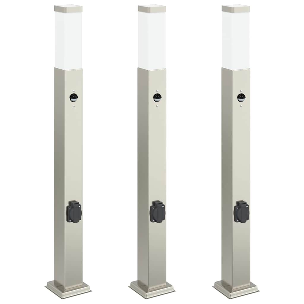 vidaXL Pollerleuchten mit Sensor&Steckdose 3 Stk. 110 cm Edelstahl IP44