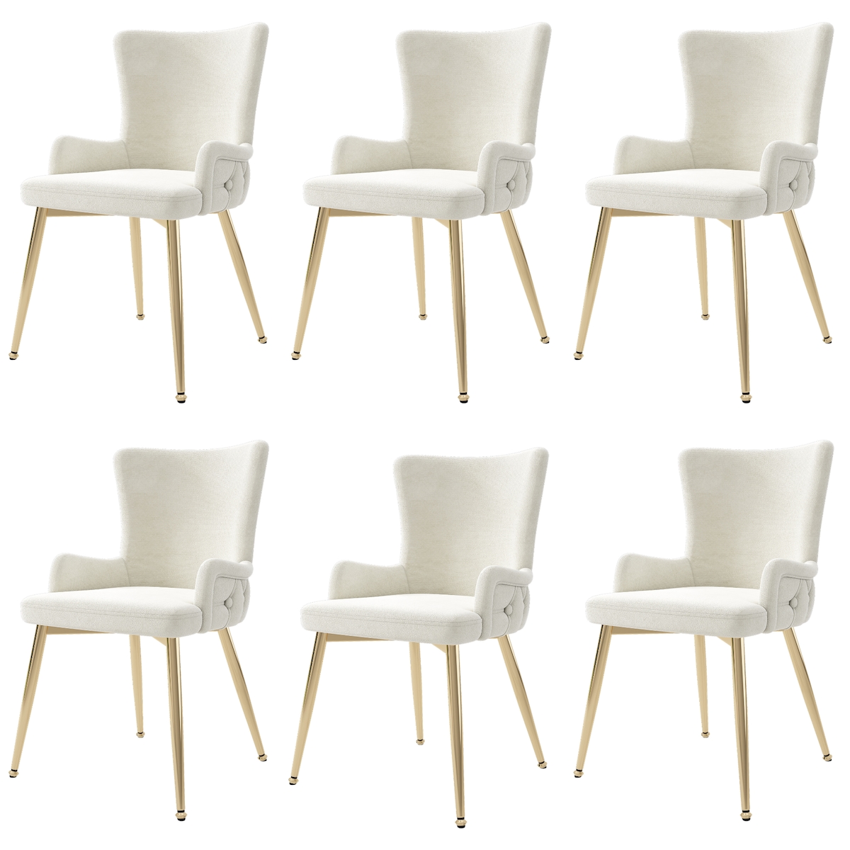 Merax Samt-Esszimmerstuhl(Set, 2 St), 6er-Set, Polsterstühle Küchenstühle luxuriöser Wohnzimmer-Schlafzimmer-Loungesessel , Beige&Gold