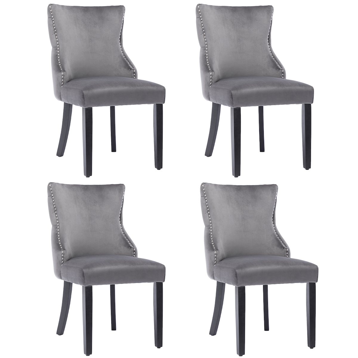 Merax Polsterstühle(Set, 4 St), Stuhl Grau Samt Esszimmerstuhl, hohe Rückenlehne, mit Knopfsteppung, Gestell aus Massivholz, Grau
