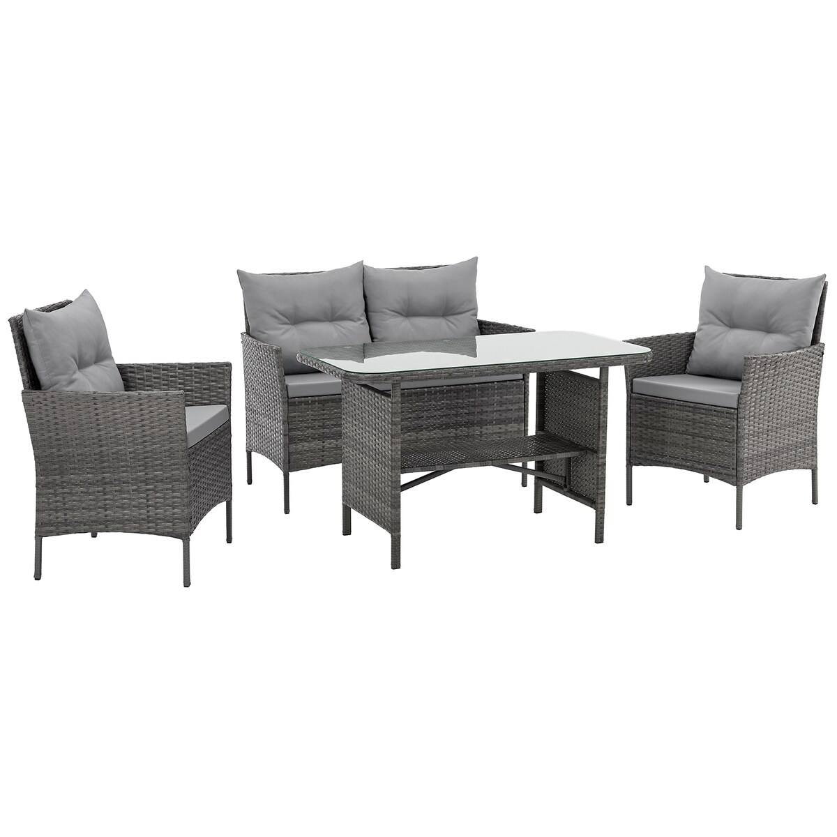 Gartenmöbel Set 4-teilig Polyrattan Lounge-Set mit Zweisitzer 2 Sessel Tisch Tiefem Sitz Dicke Kissen