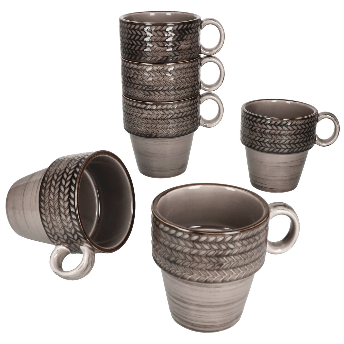 Mäser Prospero 6x Kaffeebecher 290ml braun Porzellantassen 6 Pers Tee Relief