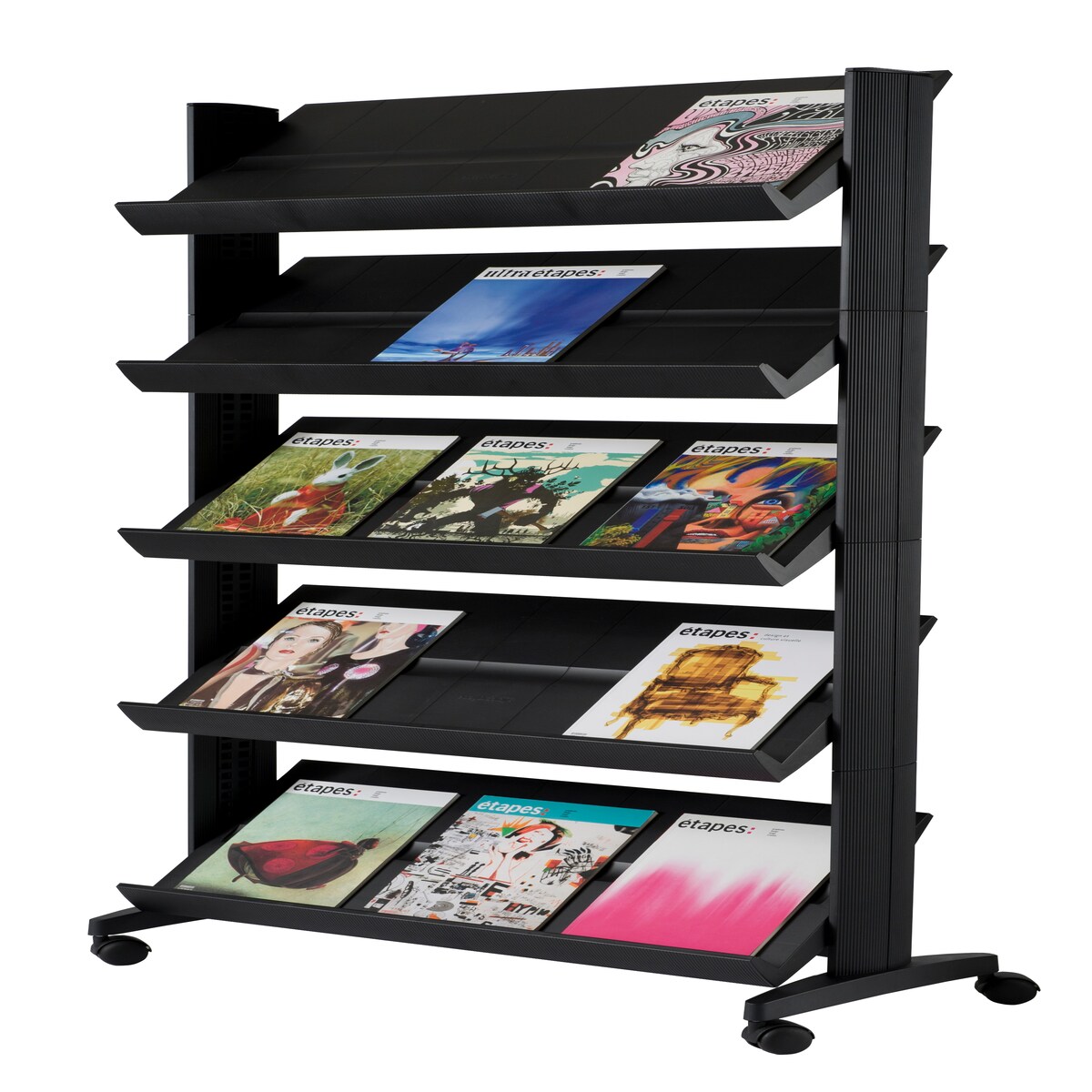 Prospektständer & Zeitschriftenständer - Bodenaufsteller - Faltbar - 5 Fächer - Mit Rollen - Schräg gestellt - Für Messe & Ausstellung