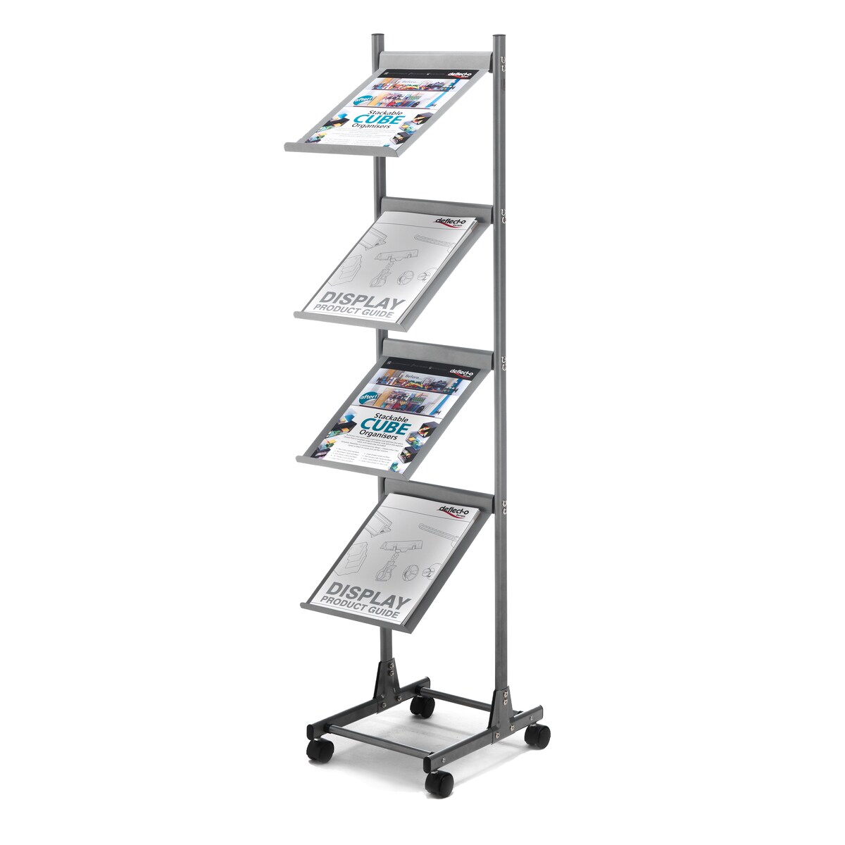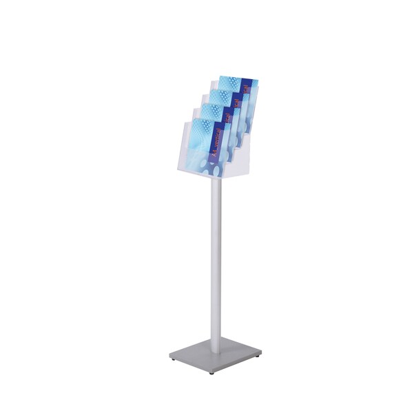 Deflecto Prospektständer Mobil - Hochformat - A4 - 4 Ablagen - Aluminium - Grau