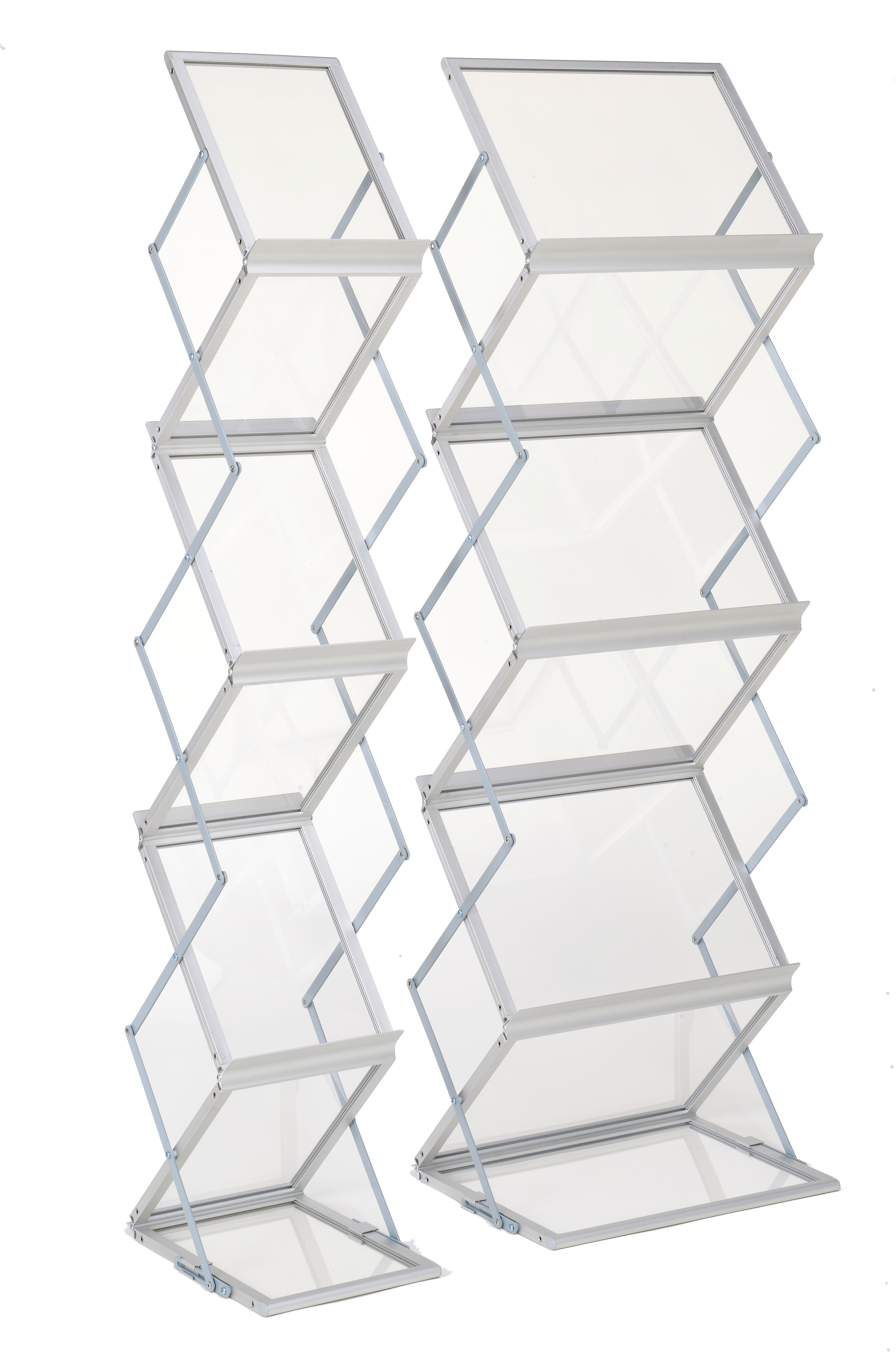 Prospektständer mit Metallablagen - Zick-Zack-Form