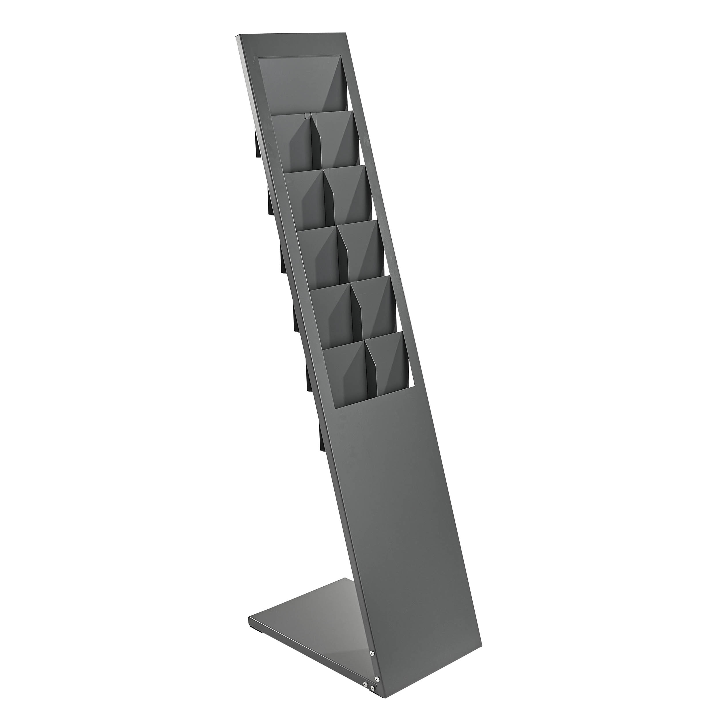 Prospektständer Zeitschriftenständer - Bodenaufsteller - 20 Taschen - Metall - Schräg gestellt - Für Messe, Büro, Ausstellung