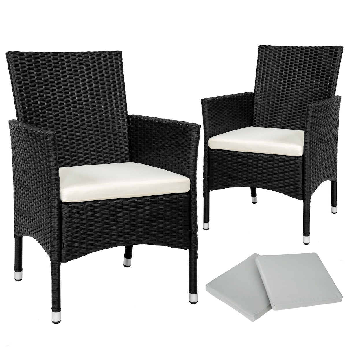 TECTAKE 2 Rattansessel inkl. 4 Sitzbezüge 2schwarz/beige