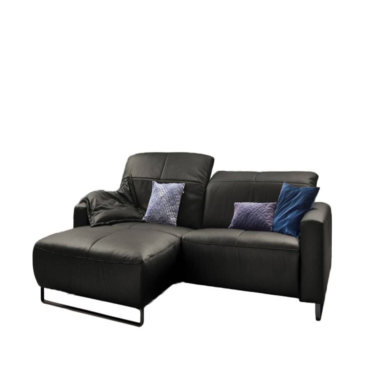 KAWOLA Sofa LOLA Ecksofa Leder schwarz mit motorischer Relaxfunktion Recamiere links