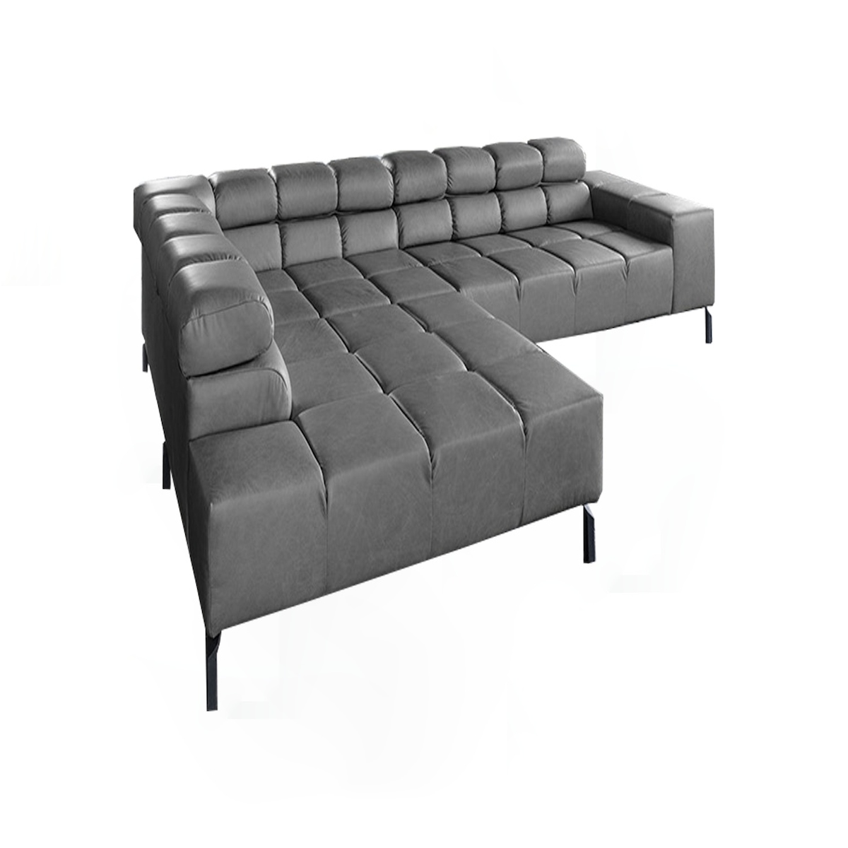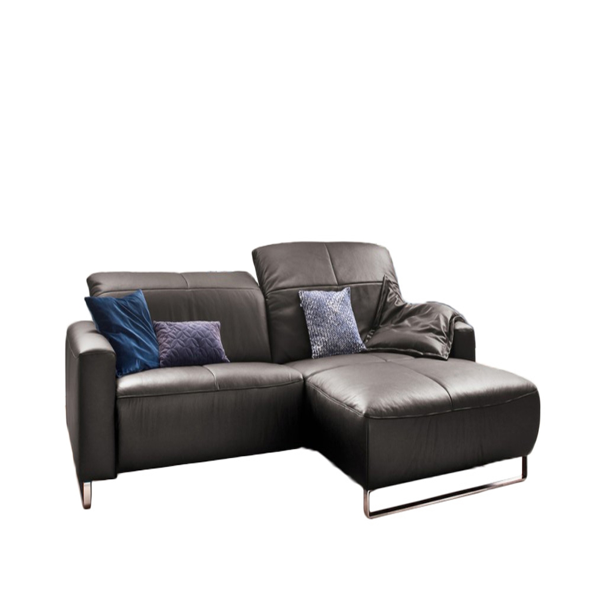 KAWOLA Sofa YORK Leder Life-line elephant Recamiere rechts Fuß Metall schwarz