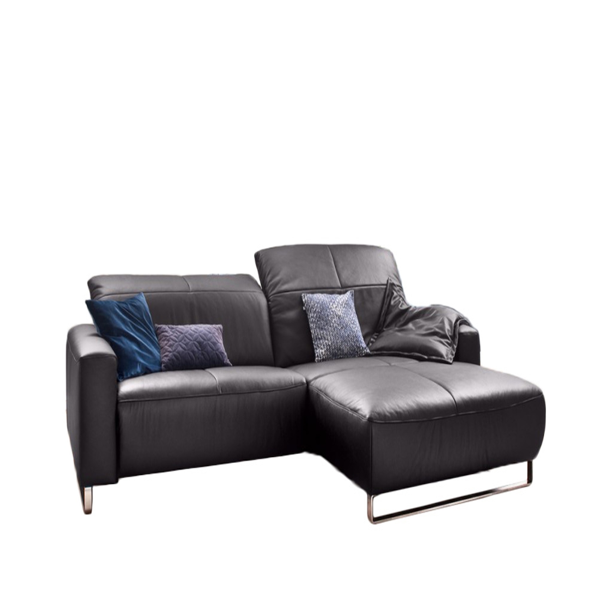 KAWOLA Sofa LOLA Ecksofa Leder schwarz mit motorischer Relaxfunktion Recamiere rechts