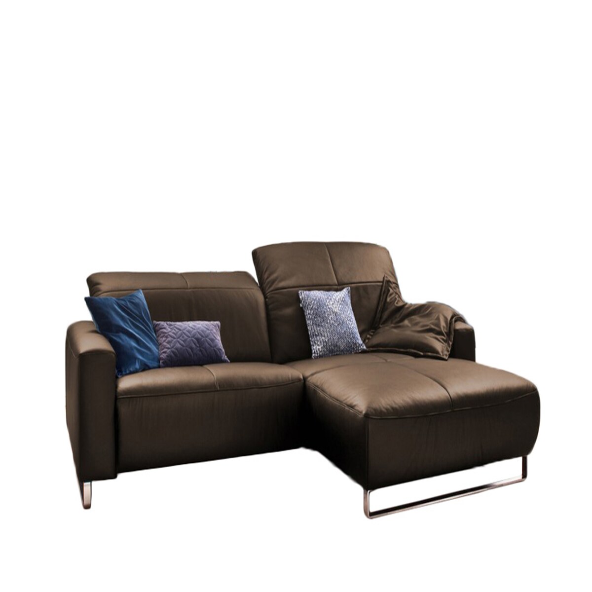 KAWOLA Sofa NELSON Ecksofa Leder dunkelbraun mit motorischem Sitzvorzug Recamiere rechts