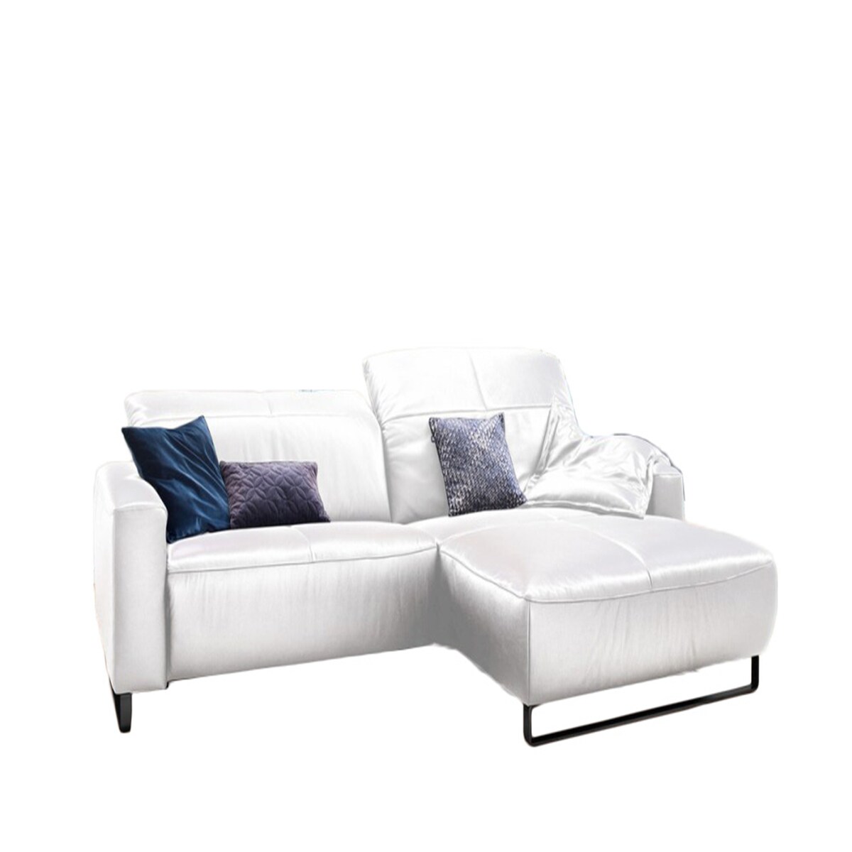 KAWOLA Sofa YORK Leder Life-line white Recamiere rechts Fuß Metall Chrom matt