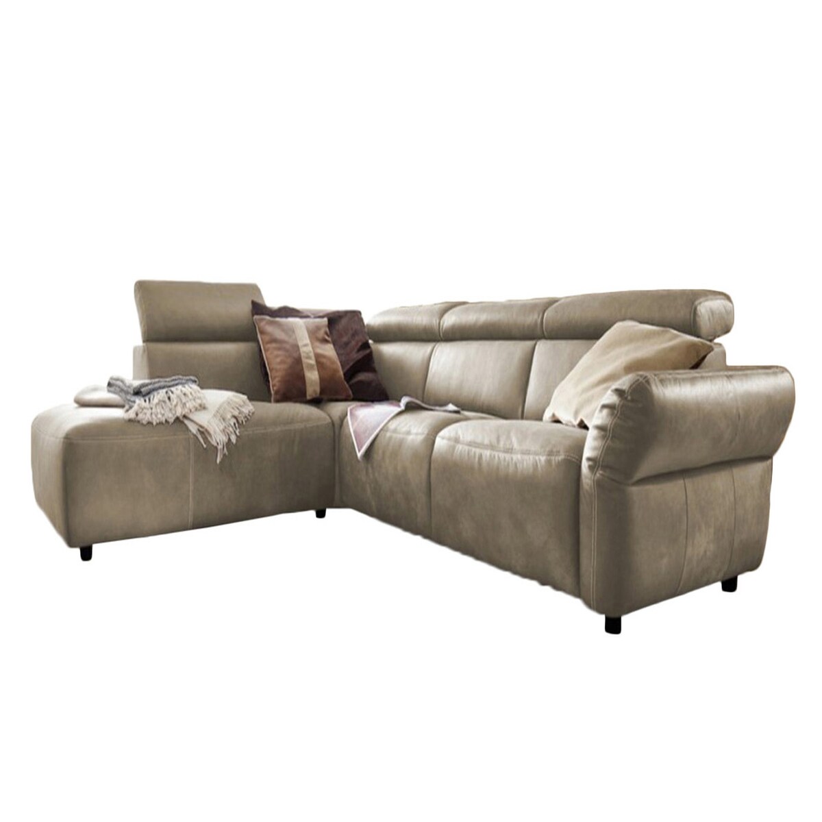 KAWOLA Sofa NELSON Ecksofa Leder beige mit motorischem Sitzvorzug Recamiere links