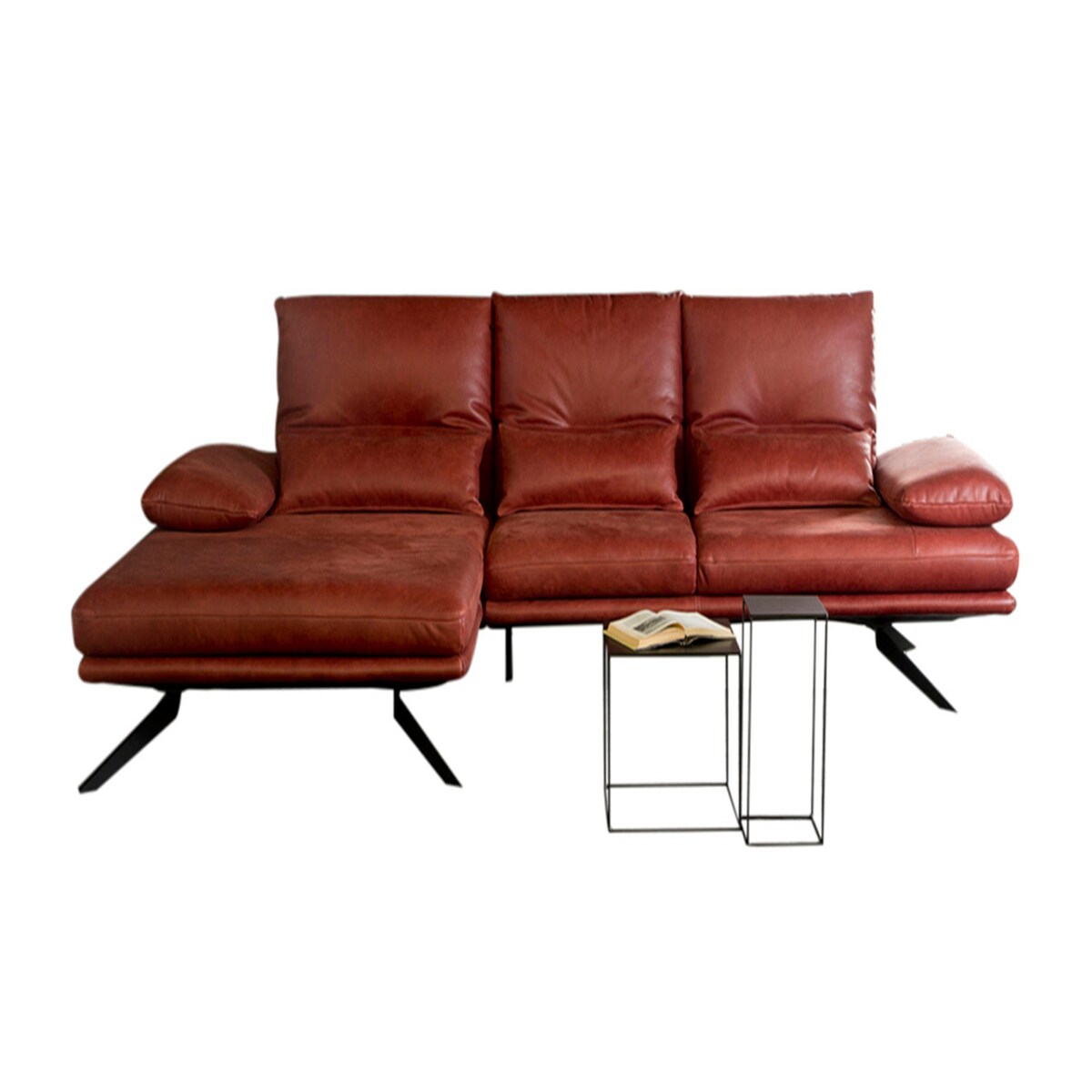 KAWOLA Sofa NELSON Ecksofa Leder rot mit Hocker Recamiere links