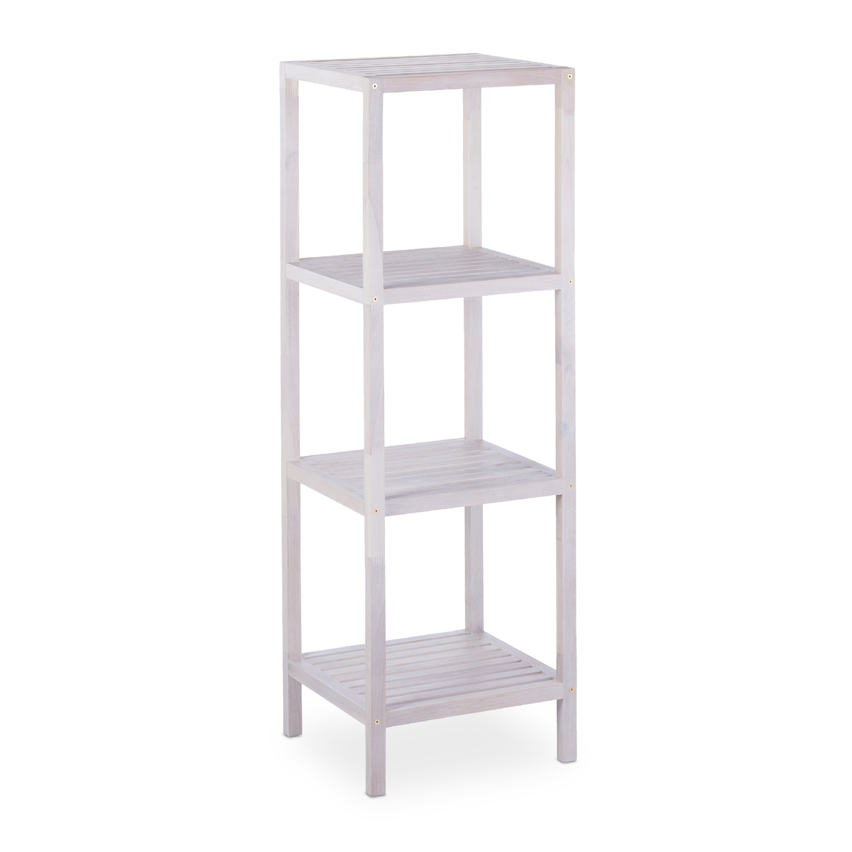 Relaxdays Badregal Walnuss, 4 Ablagen, offen, quadratisch, Badezimmer Regal Holz, HBT 112 x 36 x 36 cm, Standregal, weiß