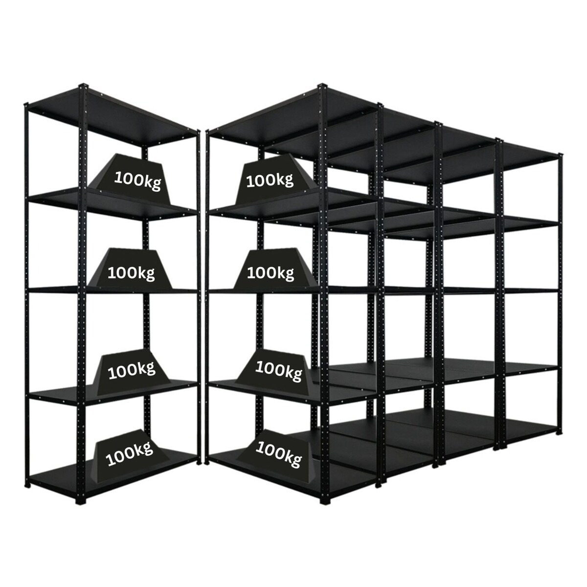 PROREGAL Mega Deal | 5x Schraubregal Haldor | HxBxT 180x90x40cm | Fachlast 100 kg | Schwarz | Schraubsystem Lagerregal Regalsystem 5 Stk.