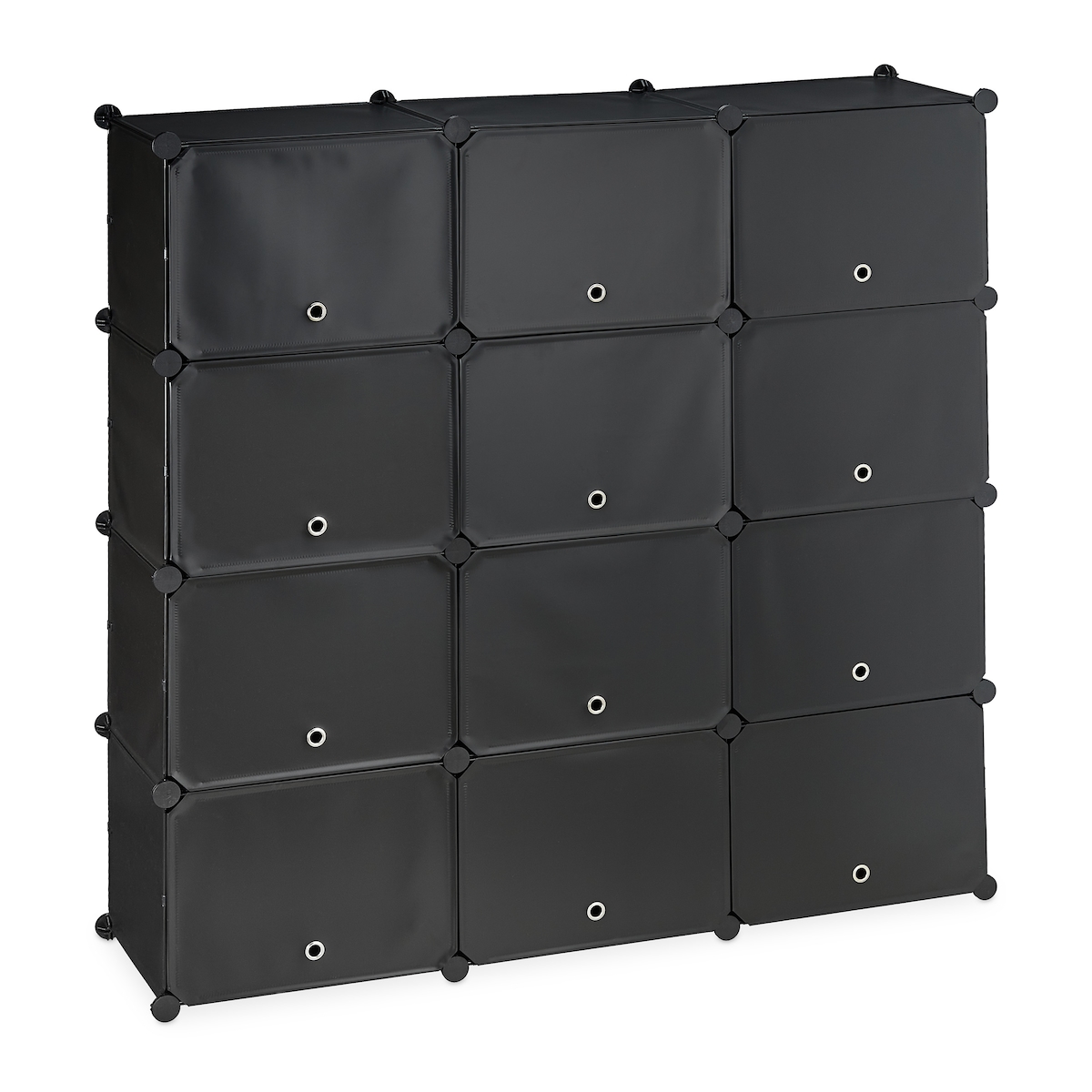 Relaxdays Schuhschrank, Steckschrank mit Türen, HBT: 125 x 125 x 31,5 cm, 24 Fächer, Regalsystem aus Kunststoff, schwarz