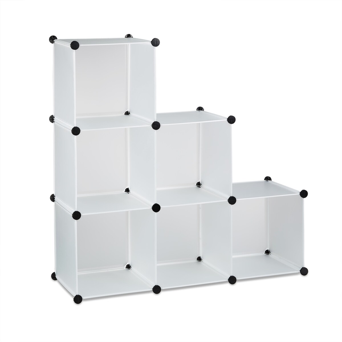 Relaxdays Stufenregal 6 Fächer, Steckregal als Kleiderschrank oder Raumteiler, offenes Regalsystem, weiß