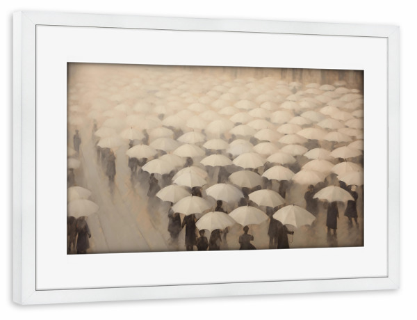 Poster mit Rahmen weiß "Regenschirm-Parade" artboxONE - Abstrakt,Menschen,Geometrie