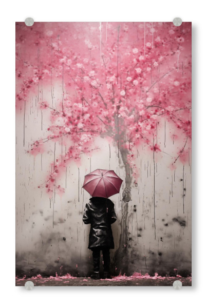 Acrylglasbild "Blütezeit Streetart" artboxONE - Floral,Menschen,Streetart - Kirschblüte,Straßenkunst,Modern,Urban,Grafitti,Regenschirm