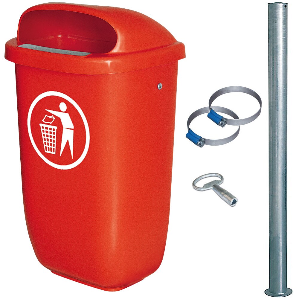 BRB 50 Liter Abfallbehälter rot im Komplettset mit verzinktem Rohrpfosten