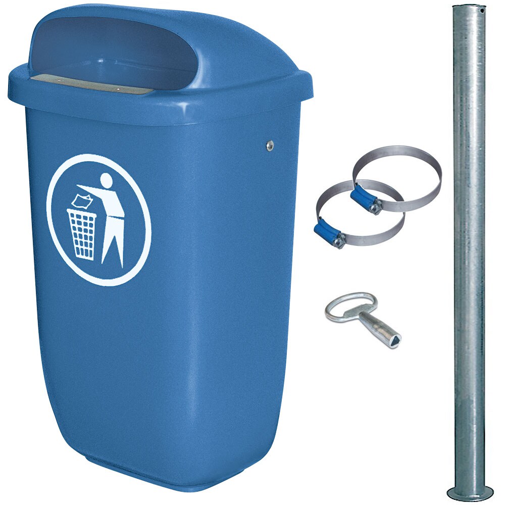 BRB 50 Liter Abfallbehälter blau im Komplettset mit verzinktem Rohrpfosten