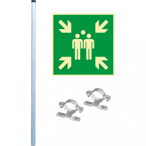 Vorteils-Set Sammelplatz PERMALIGHT power langnachleuchtend, Rettungszeichen, Rohrpfosten, -schelle