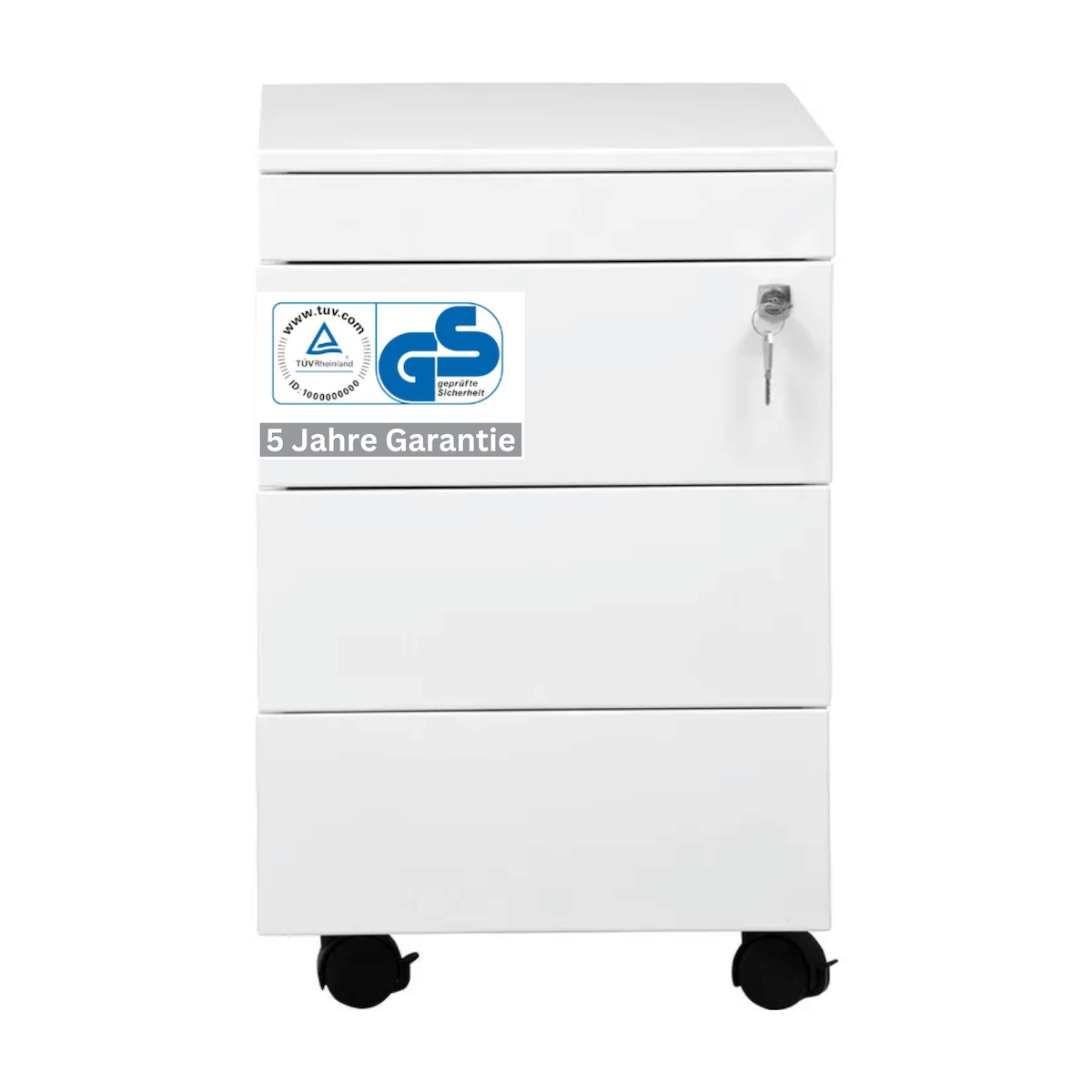 VERSEE Büro-Rollcontainer, Metall, 40 cm, 3 Schubladen, Weiß
