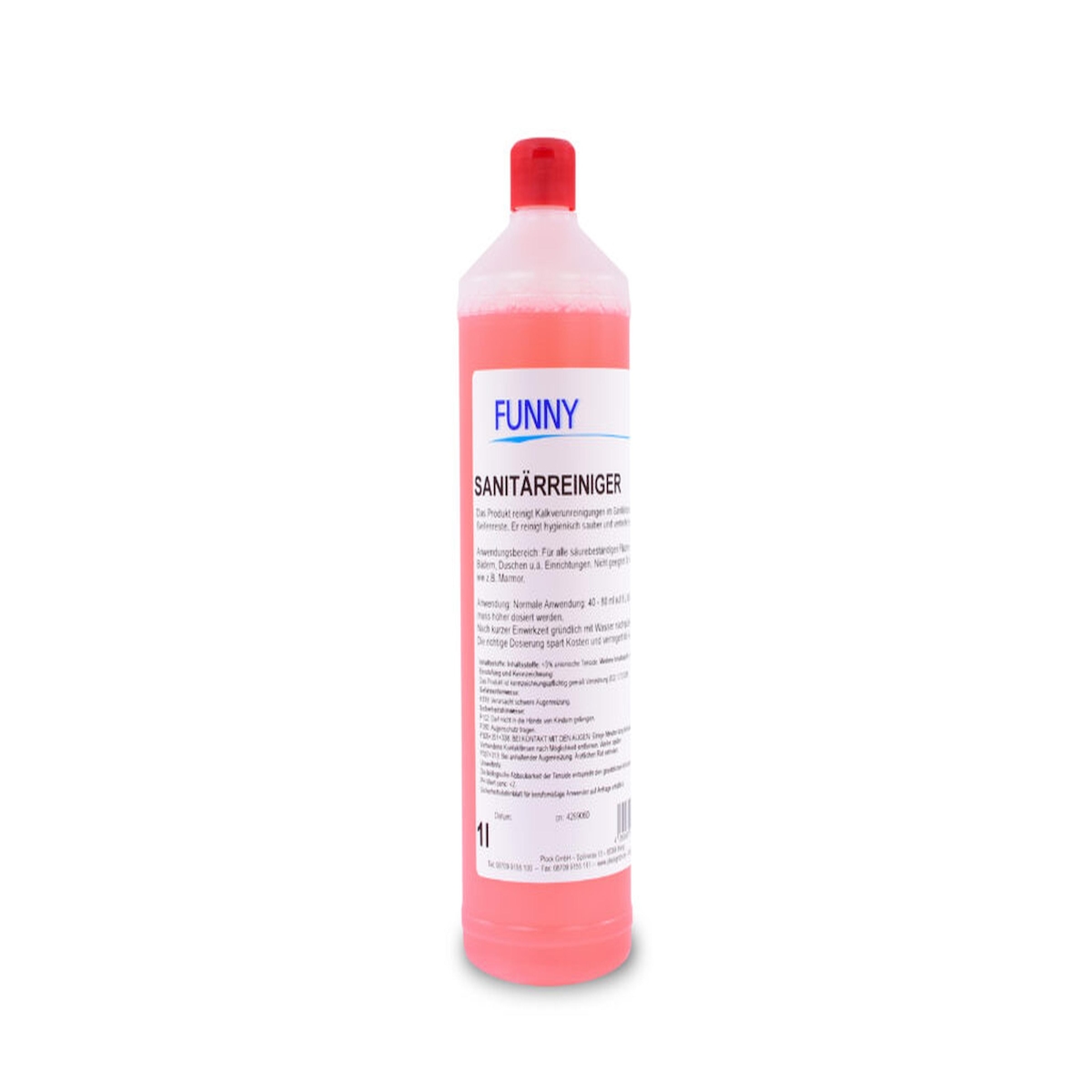 Plock GmbH Sanitärreiniger Funny - 12 x 1L Flasche - entfernt Kalk, Seifenreste und Schmutz