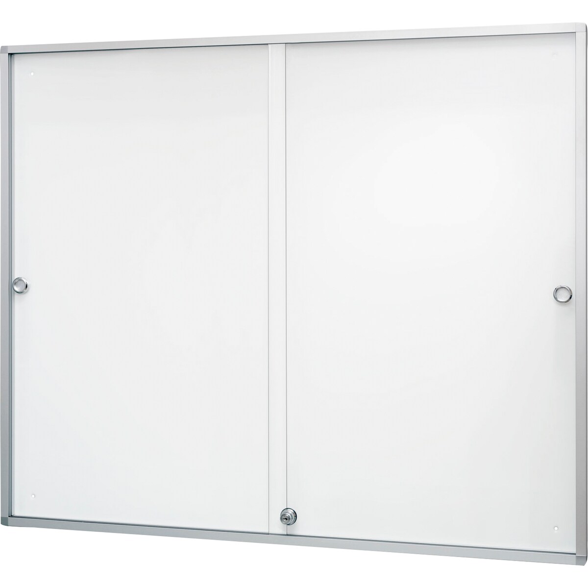 Schaukasten, BxTxH 1330x50x970 mm, 18xDIN A4, Alurahmen, Schiebetüren, ESG-Glas, Rückwand weiß