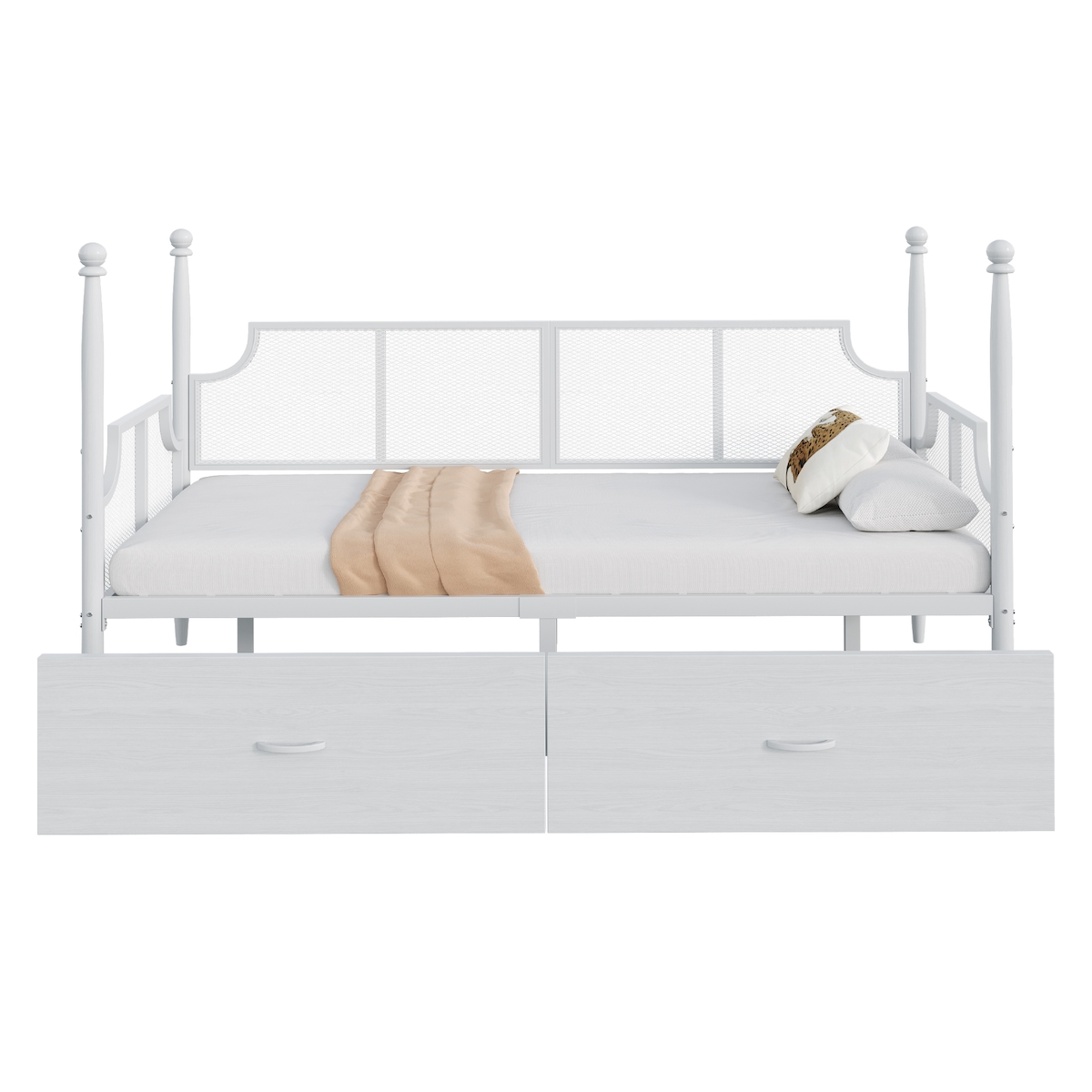 Eisenbettsofa 90x200 mit Vintage-Rückenlehne, Armlehnen und Stauraum – multifunktionales Schlafsofa für Wohnzimmer und Gästezimmer Weiß
