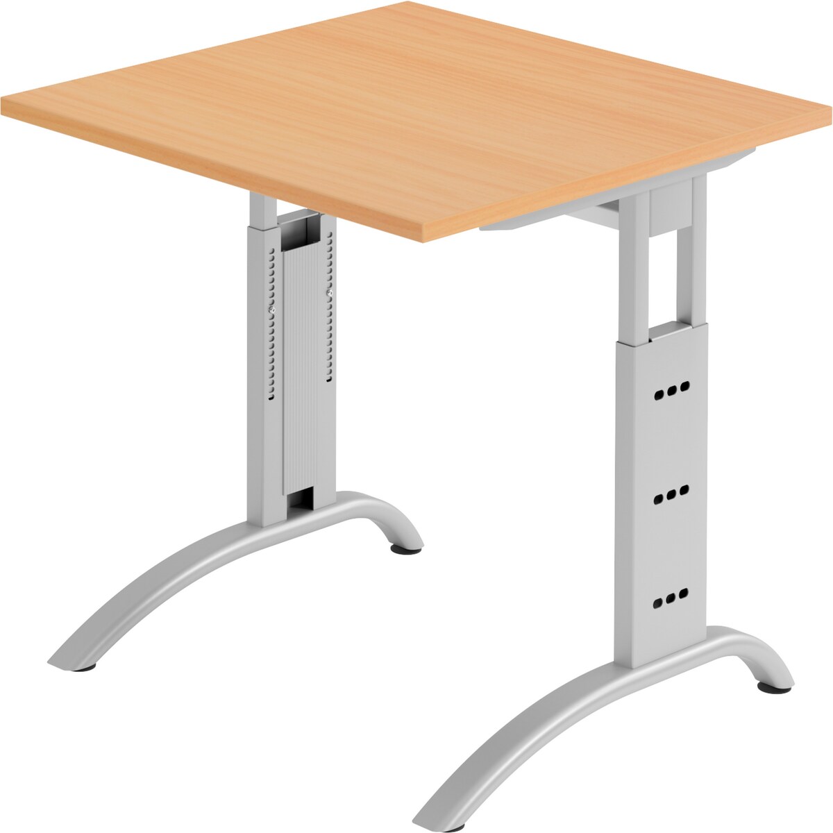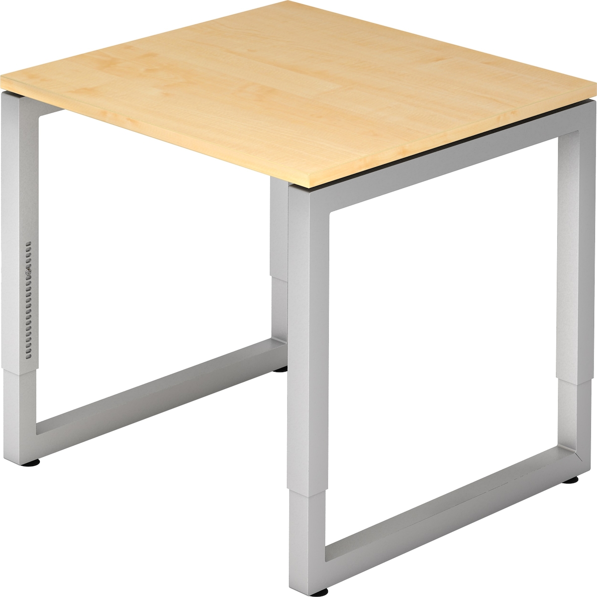 bümö höhenverstellbarer Schreibtisch R-Serie 80x80 cm in Ahorn, Gestell in Silber - PC Tisch klein für's Büro manuell höhenverstellbar, Computertisch