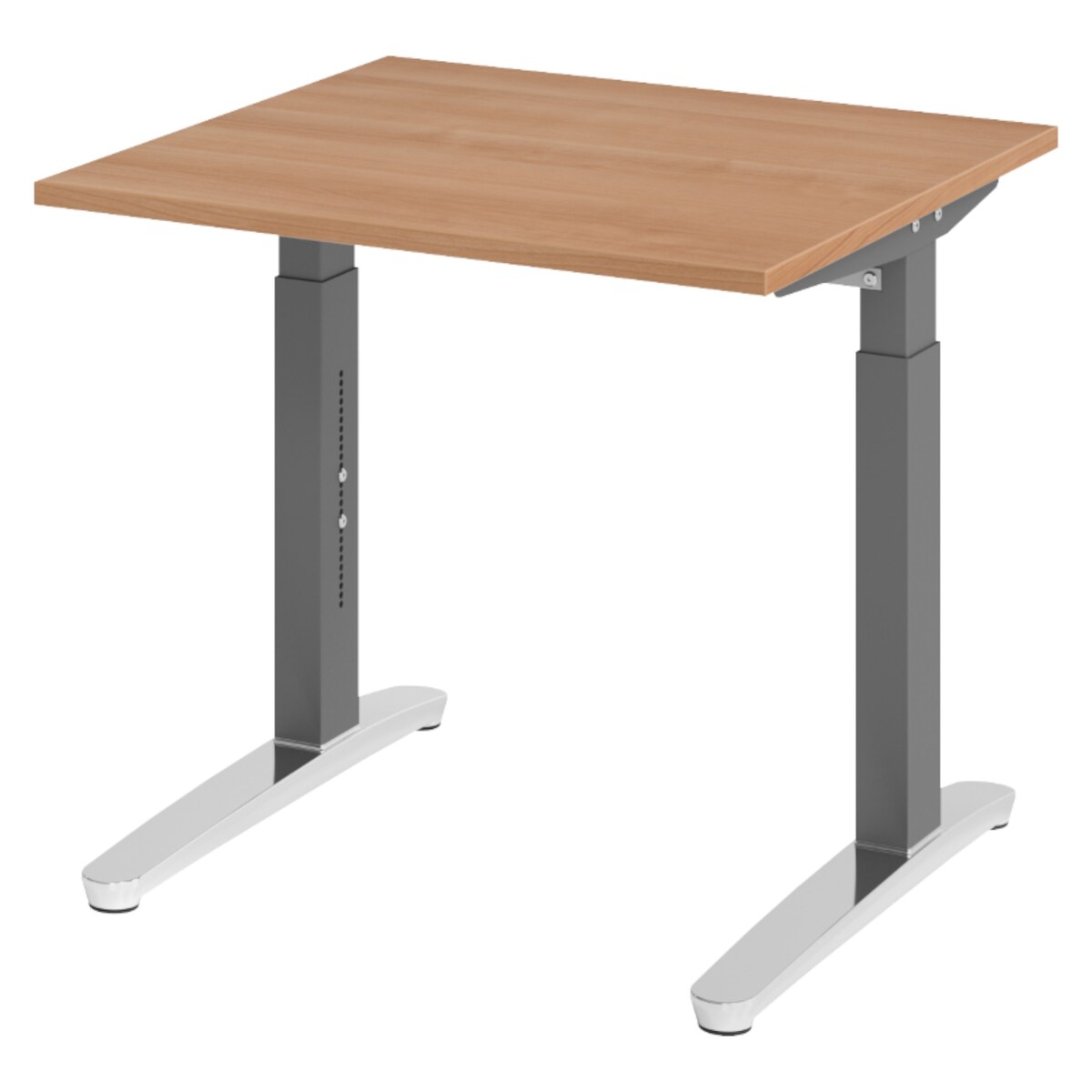 bümö höhenverstellbarer Schreibtisch O-Serie 80x80 cm in Buche, Gestell in Graphit - PC Tisch klein für's Büro manuell höhenverstellbar,