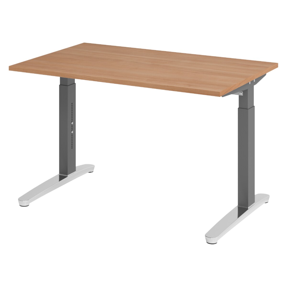 bümö höhenverstellbarer Schreibtisch O-Serie 120x80 cm in Nussbaum, Gestell in Graphit - PC Tisch klein für's Büro manuell höhenverstellbar,