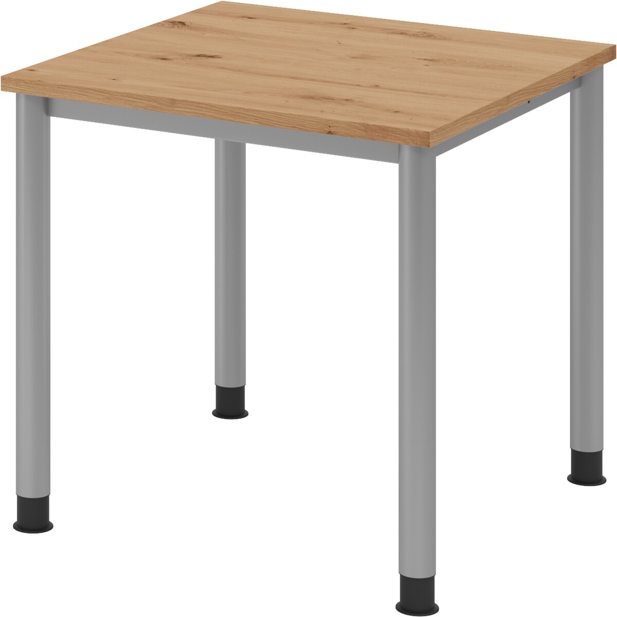 bümö höhenverstellbarer Schreibtisch H-Serie 80x80 cm in Asteiche, Gestell in Silber - PC Tisch klein für's Büro manuell höhenverstellbar,
