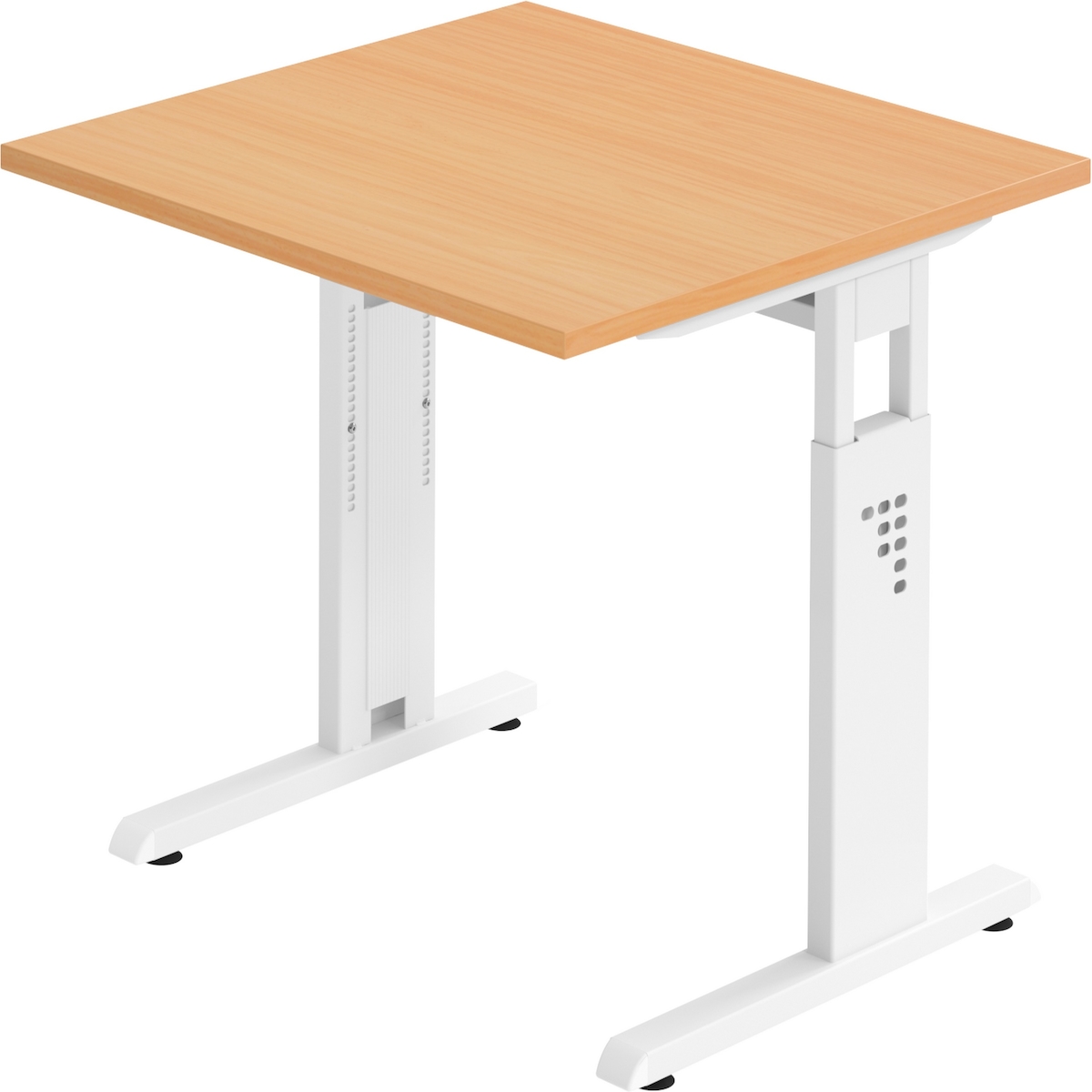 bümö höhenverstellbarer Schreibtisch O-Serie 80x80 cm in Buche, Gestell in weiß - PC Tisch klein für's Büro manuell höhenverstellbar, Computertisch
