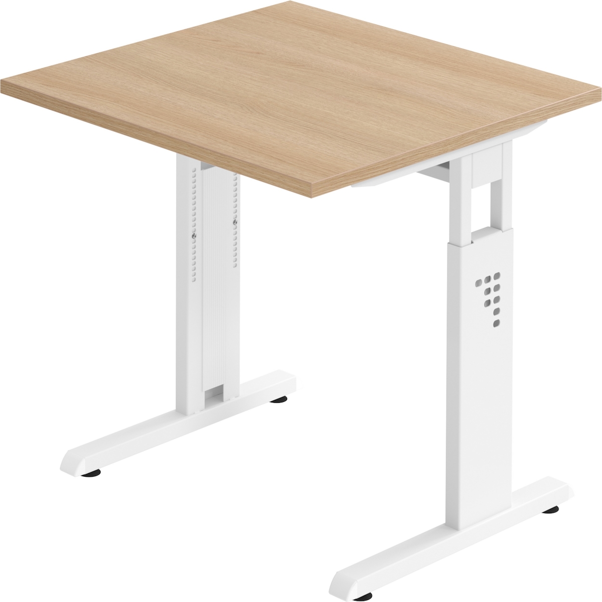 bümö höhenverstellbarer Schreibtisch O-Serie 80x80 cm in Eiche, Gestell in weiß - PC Tisch klein für's Büro manuell höhenverstellbar, Computertisch