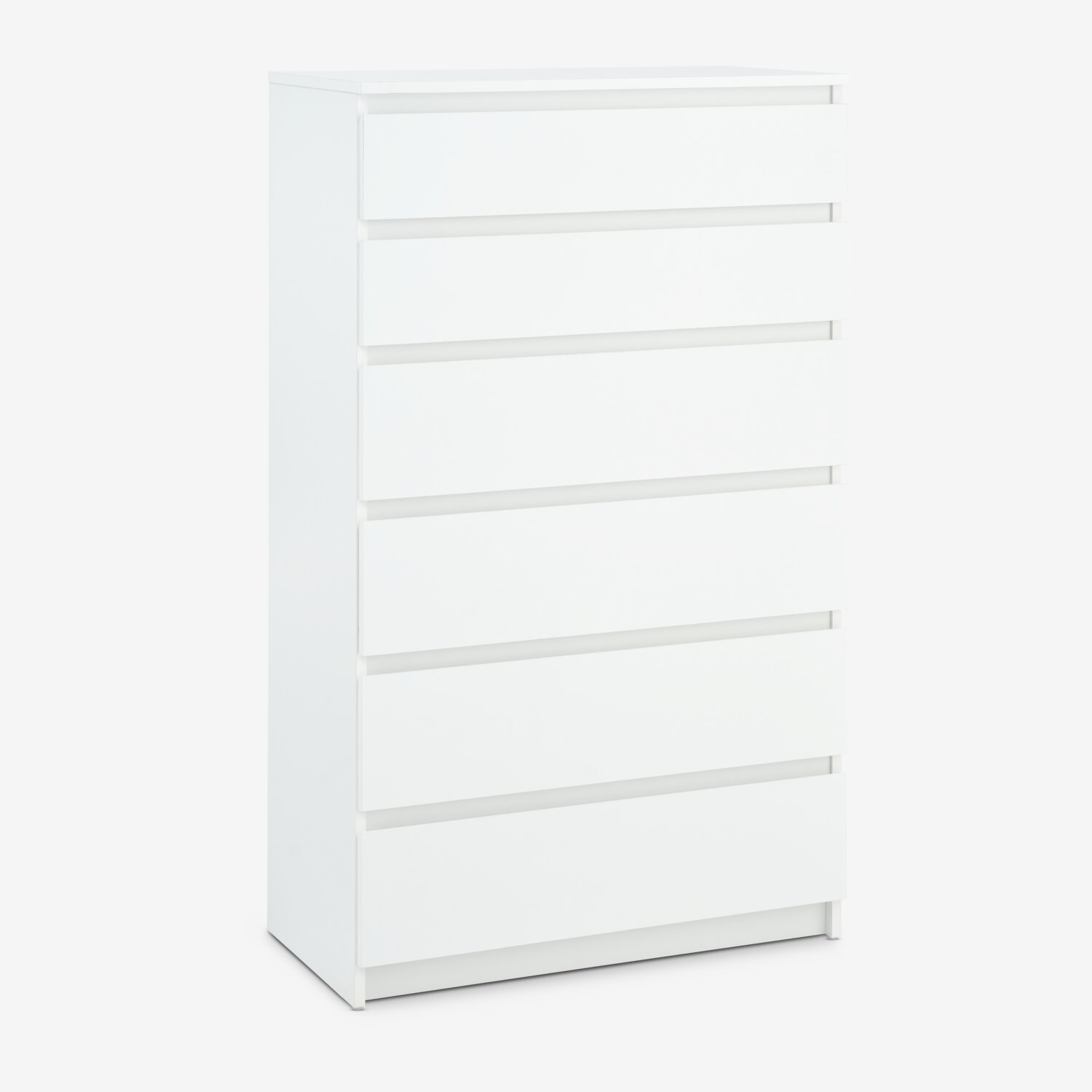 Roe Furniture | Kommode - 6 Schubladen - 140 cm - Weiß Hochglanz - Modernes Design - Funktionell und Elegant - Sideboard
