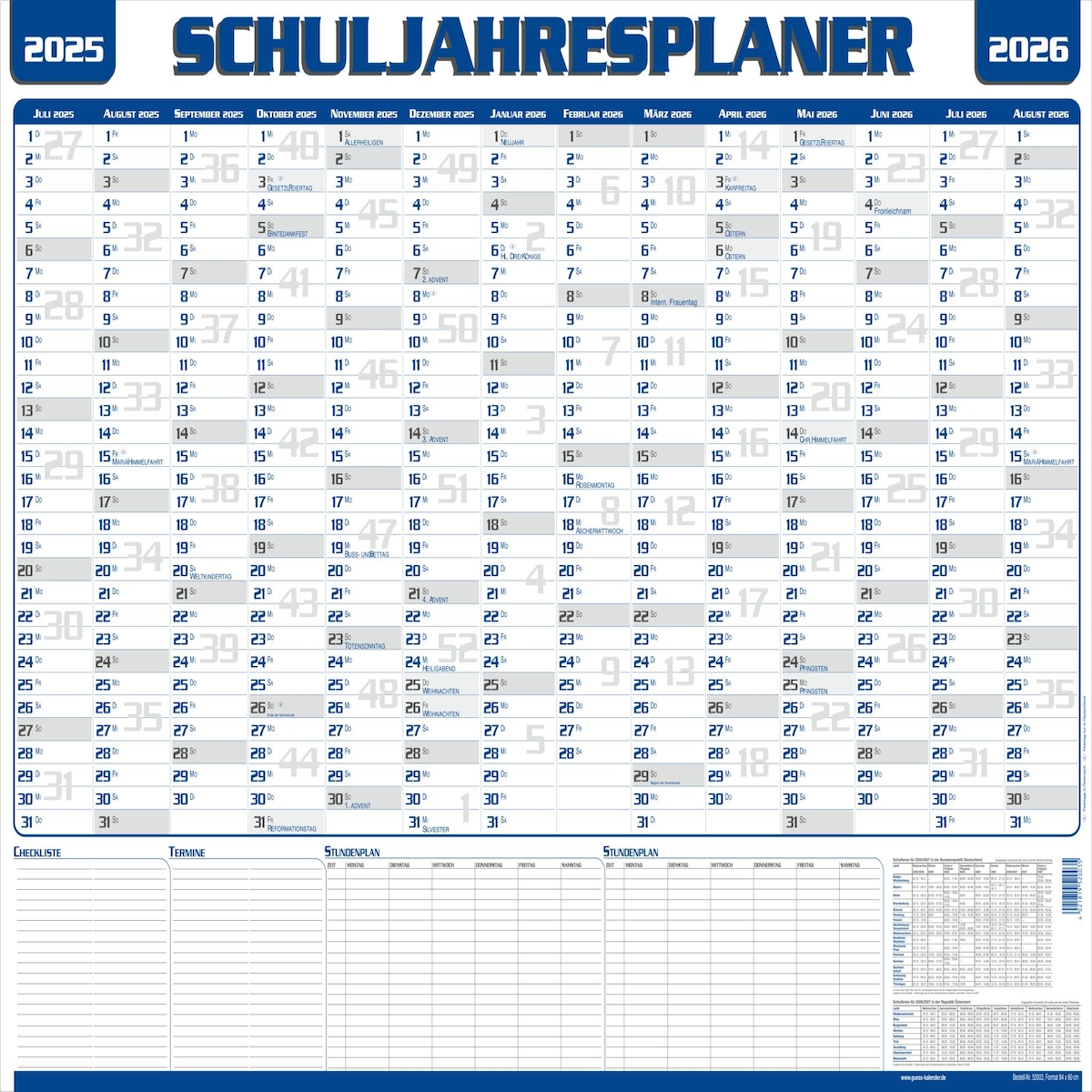 Schuljahresplaner 2025/2026 - Wandplaner Kalender Poster Druck - Grösse 91,5x61 cm gerollt