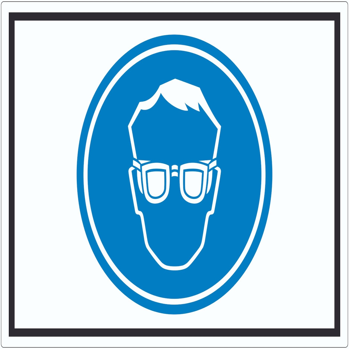 Schutzbrille tragen Symbol Schild A4 Rückseite selbstklebend